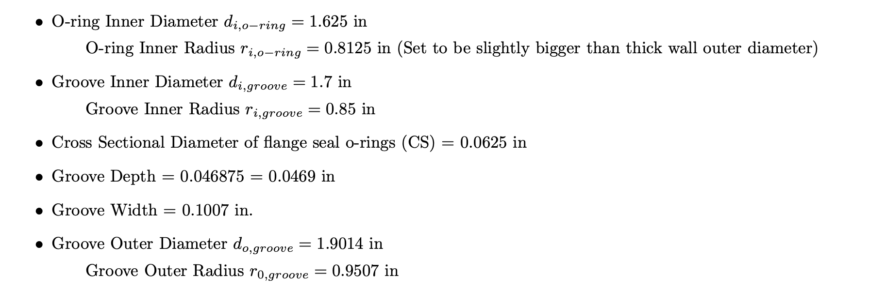 To determine a suitable O-ring that would seal our pressure vessel effectively, the following equations were used: